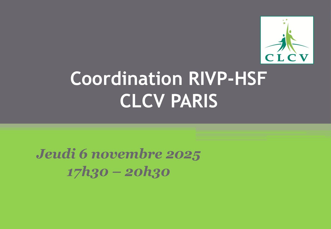 Nous avons le plaisir de vous inviter à la coordination RIVP – HSF qui se tiendra :